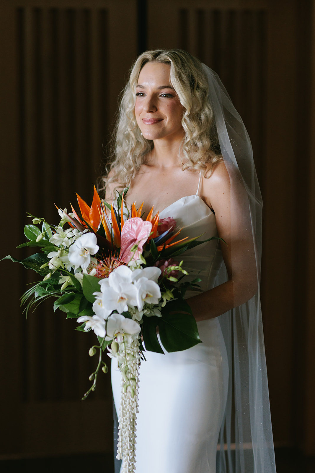 Their guest list was intimate. So, throughout the planning process, we kept coming back to the idea of allowing connection through each of their events. The end result was centered around this overall idea. With guests fully immersed in each part of their wedding day as it unfolded. During the ceremony, guests were treated to luxuriant all white fresh floral leis and parasols to shield them from the sun. Photos taken after the ceremony were created with different pairings of guests, allowing plenty of time for Kat & Tyler to capture each moment with the ones they love most.
